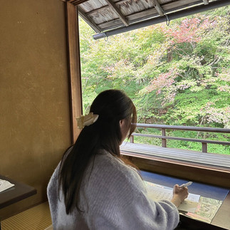 第一次發現這個景點是社團裡的朋友分享的照片, 滿窗的楓紅到應在漆器的大桌面上, 真的是超級夢幻, 於是便興起我一定要前往一觀的想法, 由於我預計造訪的季節是秋天, 所以是需要提前預約的, 網站大約在每年的楓葉季前一個月會開放預訂, 門票目前都還是兩千日圓 預定的時候會規定你參觀的時間, 但大致上不太會真的趕你, 可能就是一個分流的機制 很多人都說進去之後就是大家一直在一個桌子拍照, 但我實在覺得美翻了!!! 世間哪有幾個桌子可以呼應窗外整片的風景呢?? 在這邊隨手拍來就可得的美景, 奉勸大家不要趕時間~~好好享受 進入主建物印象是要脫鞋的, 然後會給你一份經書, 接著會引導來到大家拍照的地方, 魚魚到訪時還未轉紅 有點可惜 不過我想這也是我需要再到訪的理由 期待下次的桌面映滿楓紅呀^^ 整個環境還是美翻了~~~ 不停地拍著到現在也捨不得刪掉重複的照片 (文末有照片可點) 然後往上走會有一區抄經的地方,人潮應該非常多, 大家可以排隊等一下自己喜歡的位置 因為超級值得等待!!!! 相信如果很幸運整個楓紅抵達的人應該完全著迷了!! 這邊有短影音讓大家瀏覽 點這邊 我回家後還跟我媽媽說如果可以選一個地方出家 那我就要選這邊了!!!! 環境真的很清幽很美 (當然撇除參觀的人潮啦>"<) 抄經書之後往下走會有一個庭園, 那邊也是建議大家坐一會 夏天的青苔真的也是美到不要不要的 然後我偶然間聽到一個日本的姊姊在詢問喝茶的費用 我也就跟著他們的身後跟服務員說我想參加~ 一個梯次大約六個名額 然後一組點心會有抹茶 以及 #八瀨比叡山 限定的果子(1400日圓) 雖然費用不是很便宜 但是超級建議大家有機會可以參加 進入的茶室 窗景就非常美, 會有專業的 #茶道 老師來跟大家解說一下房間內的字畫 容器/ 點心等等, 但速度有點快我不是很懂 倒是老師離開後姐姐門滿熱心地慢慢解說給我聽 另外我真心覺得那個果子超好吃!!!! 我後來在外面帶了好幾條回台灣送人 這邊有我吃果子的短影音 點這邊